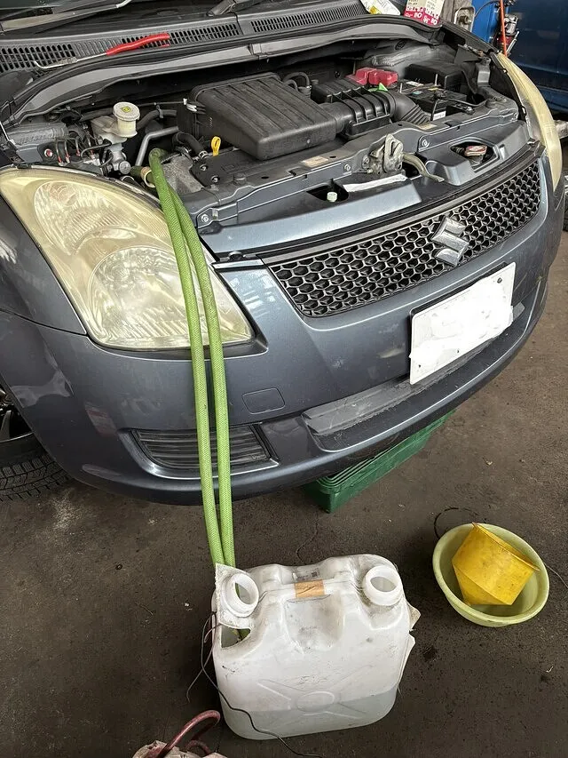 クエン酸とぬるま湯を使用し、水のポンプにてヒーターコアを洗浄します。
